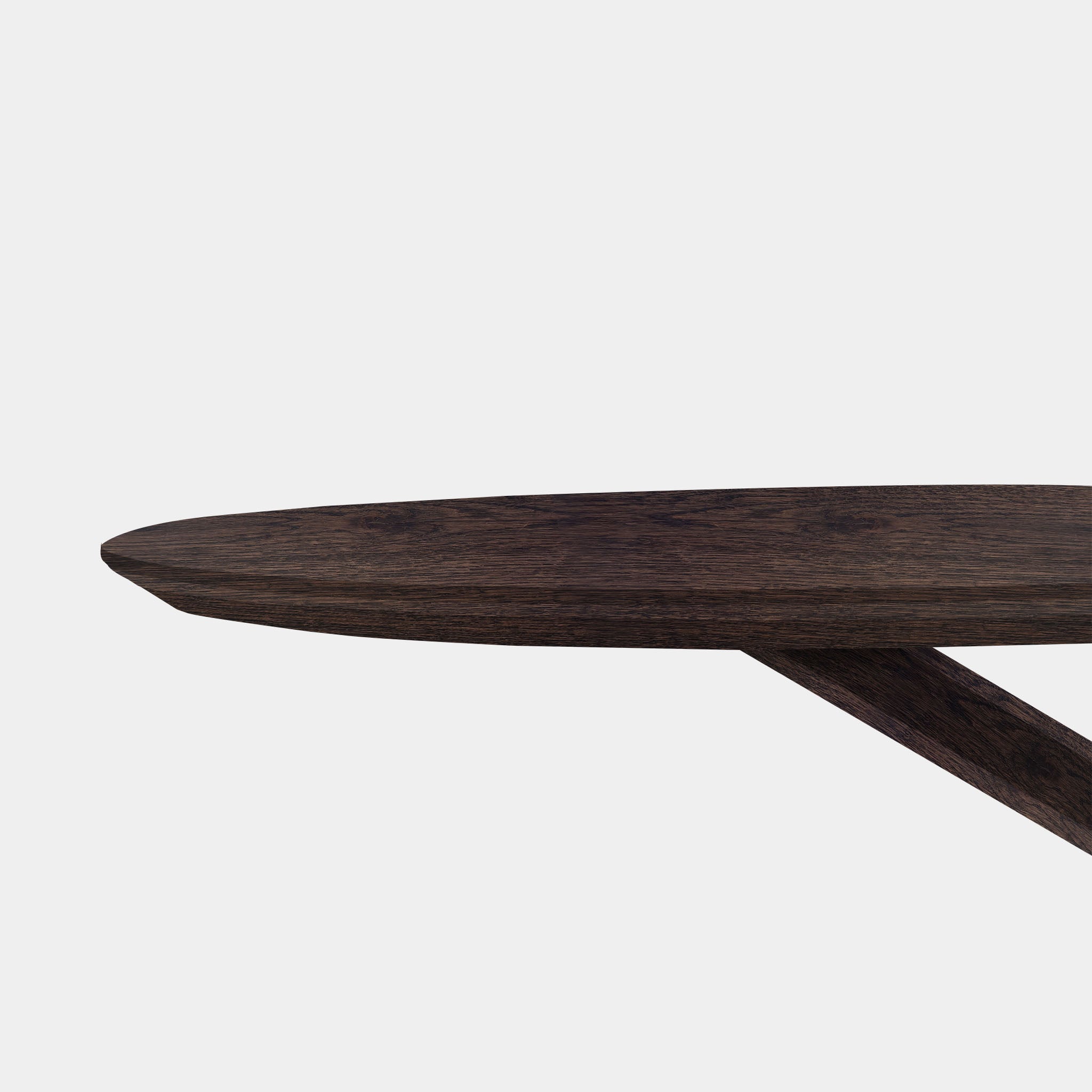 Deze stijlvolle plat ovale tafel van massief eikenhout, afgewerkt in de diepe, warme kleur Dear Brown, straalt klassieke elegantie en ambachtelijke kwaliteit uit. De afgeronde, afgeplatte vorm van het blad zorgt voor een vloeiend en vriendelijk profiel, terwijl het robuuste houten matrix onderstel, meegespoten in dezelfde tint, zorgt voor visuele eenheid en stabiele ondersteuning.