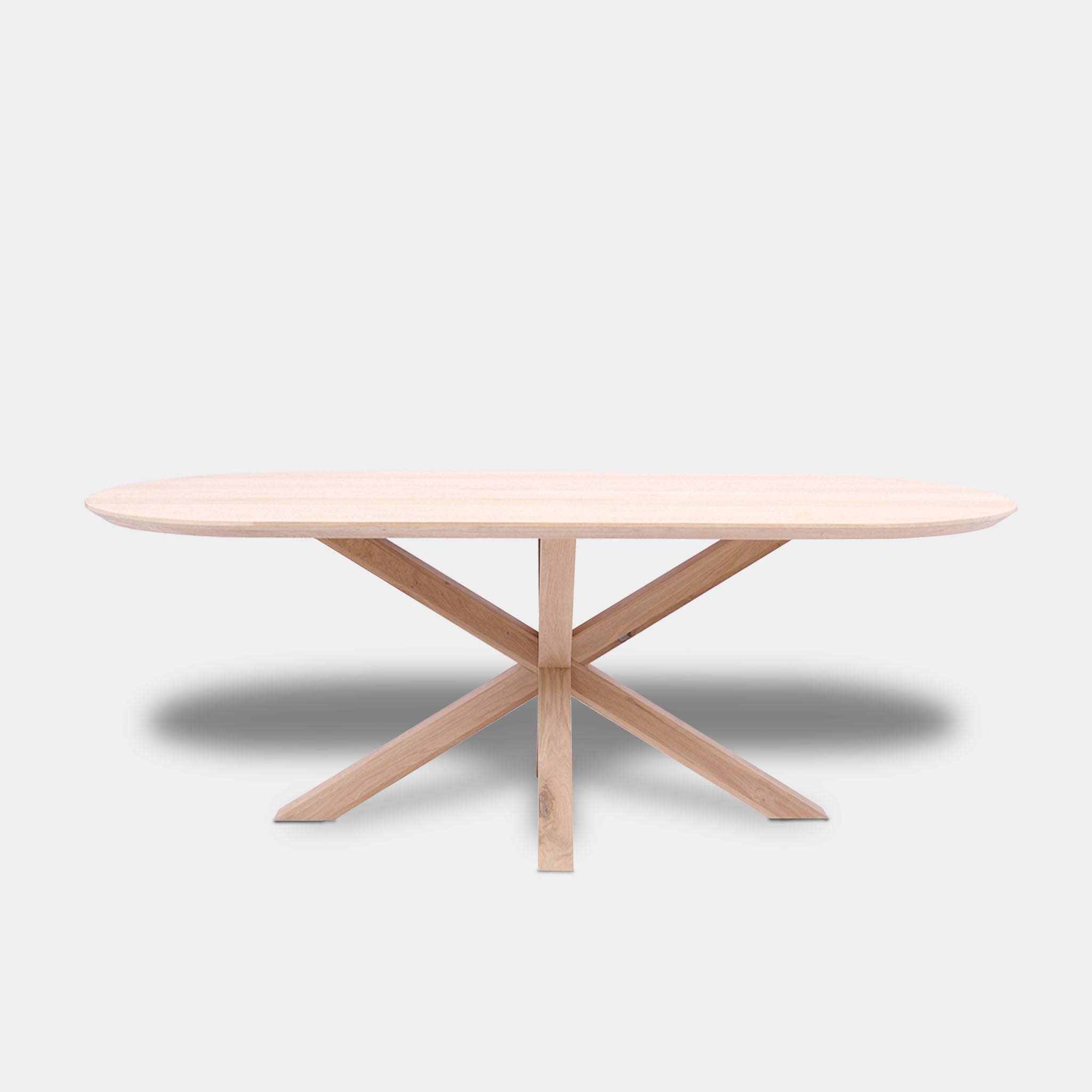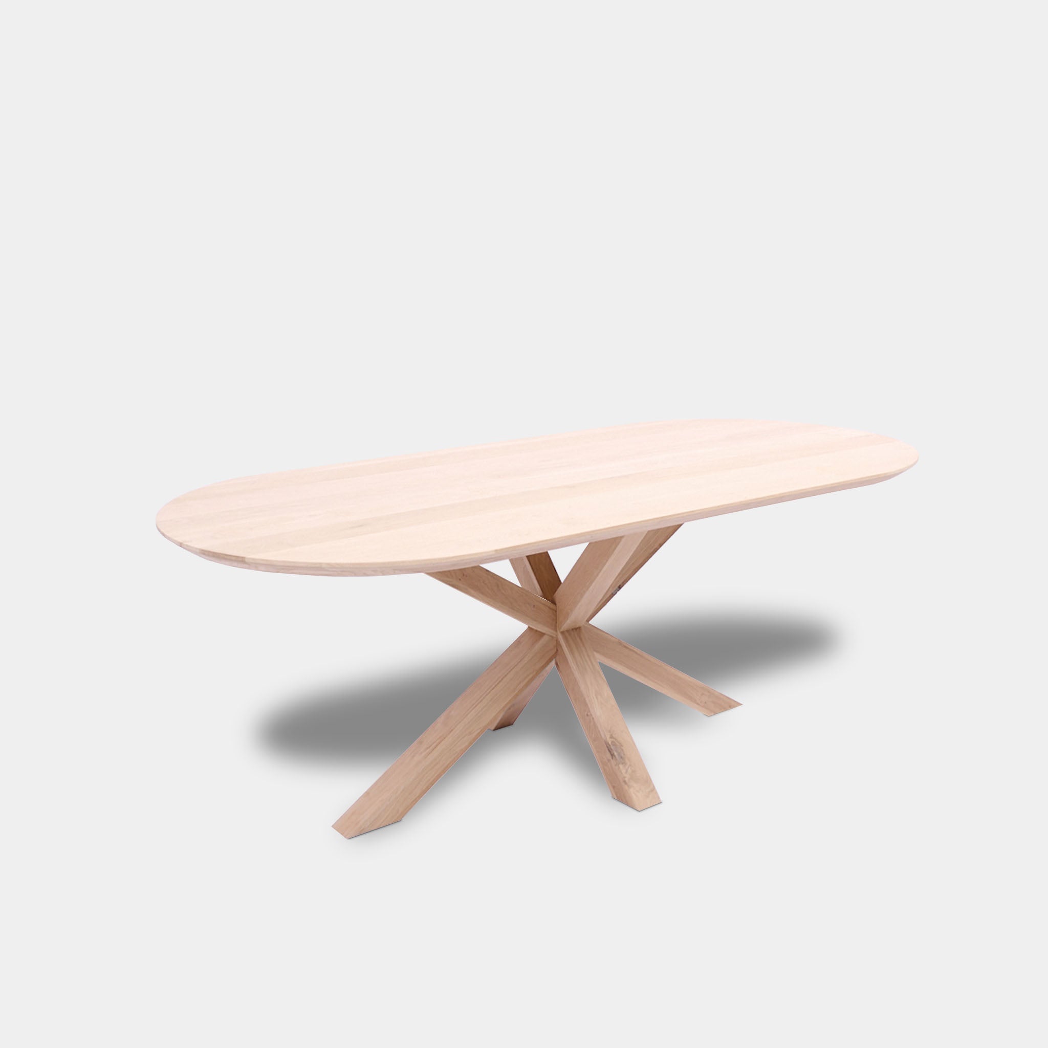 Plat Ovale Eikenhouten Tafel – Onbehandeld met Houten Matrix Onderstel