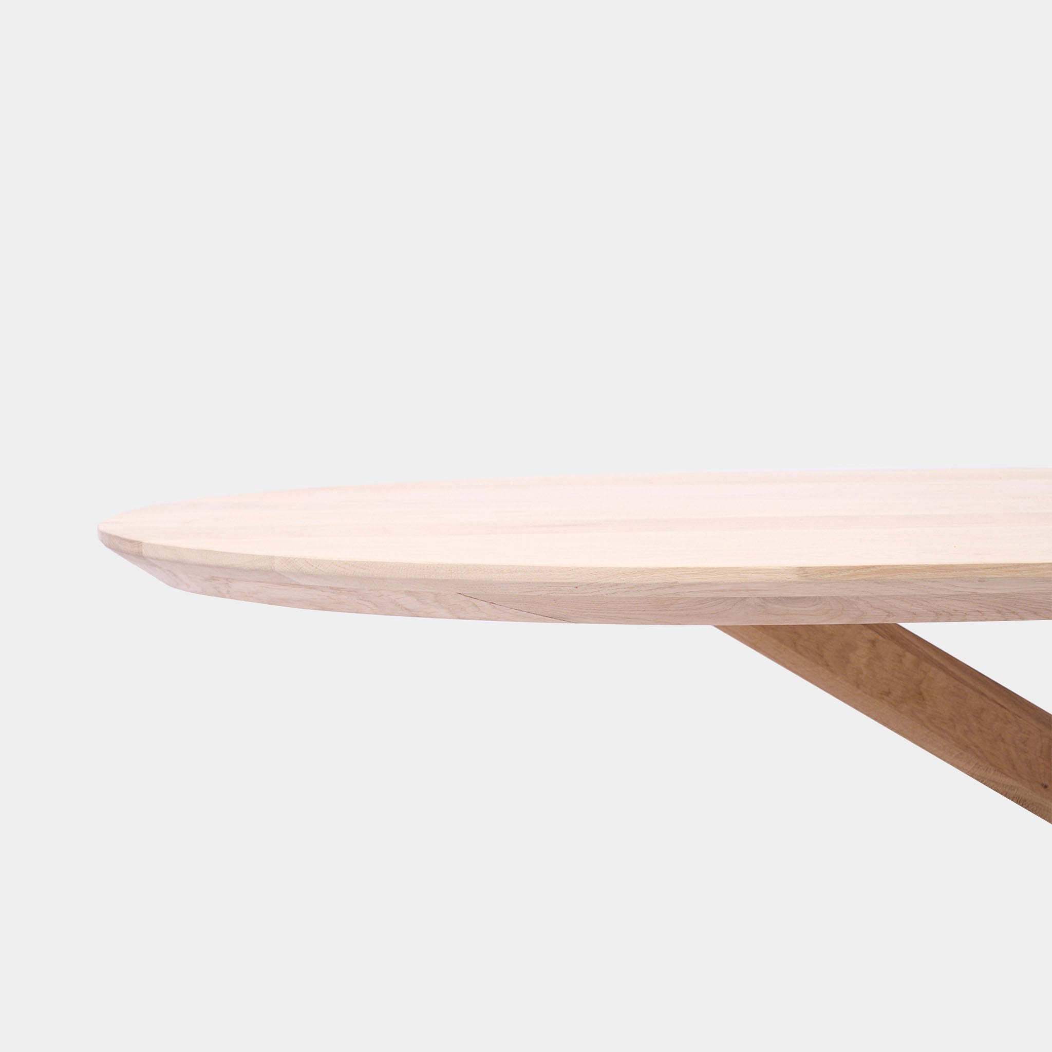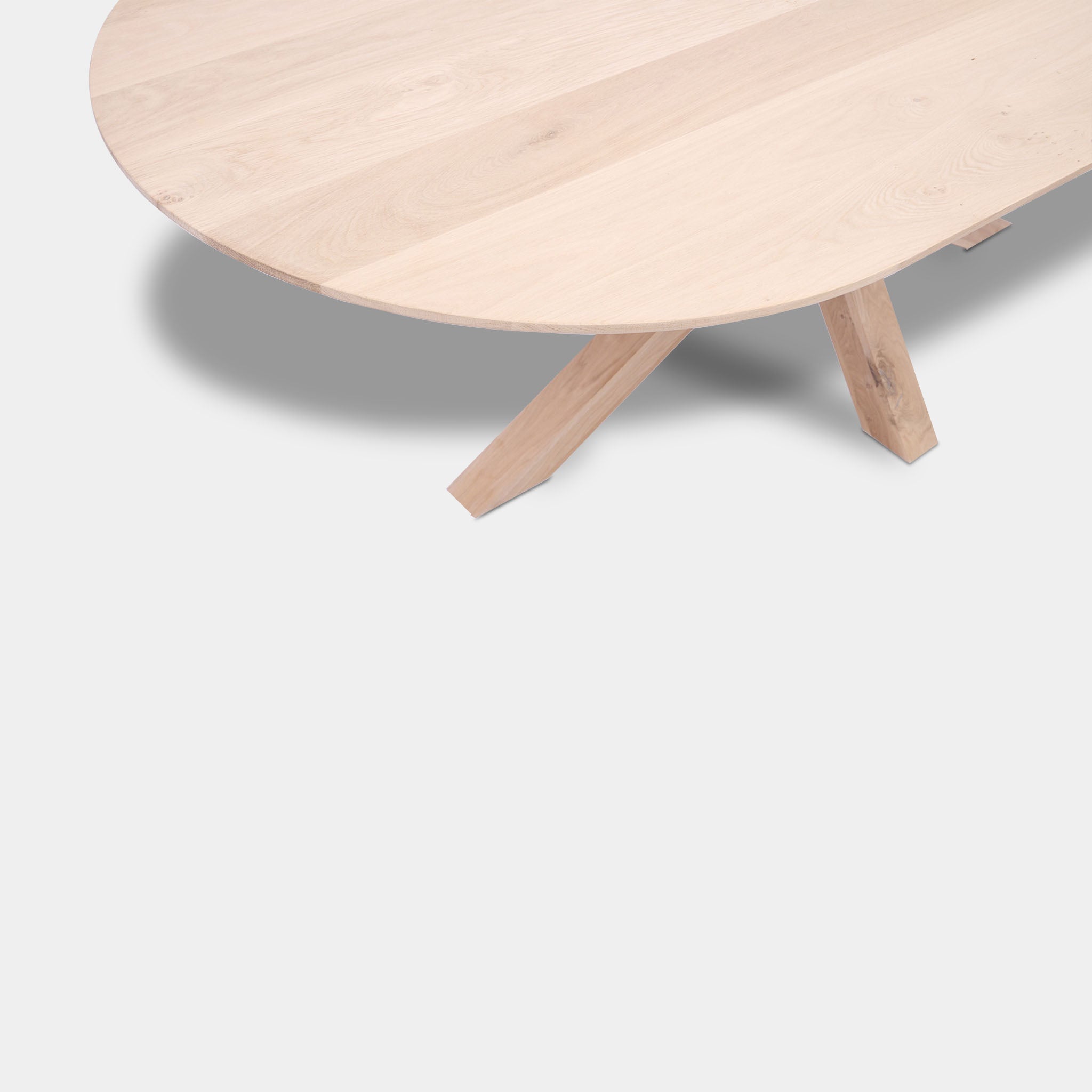 ➡️ Stel jouw plat ovale eikenhouten tafel samen met houten matrix onderstel – onbehandeld