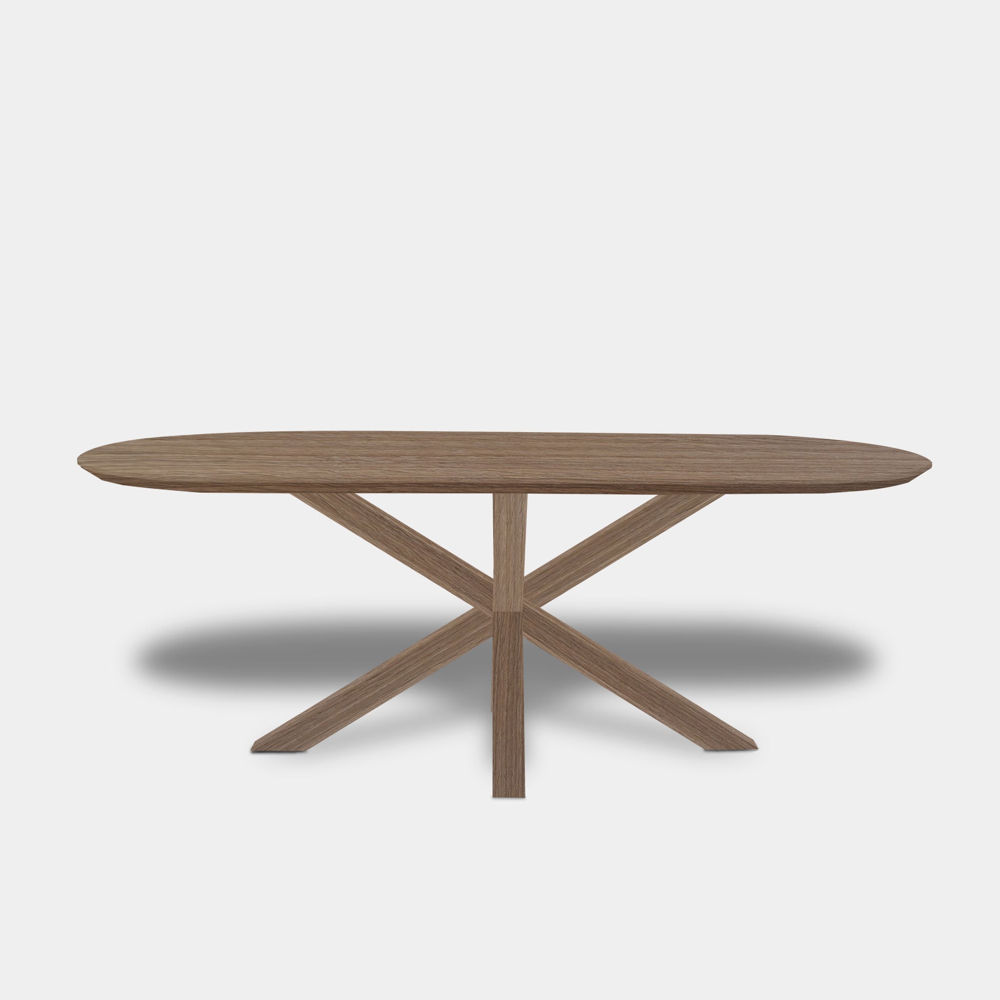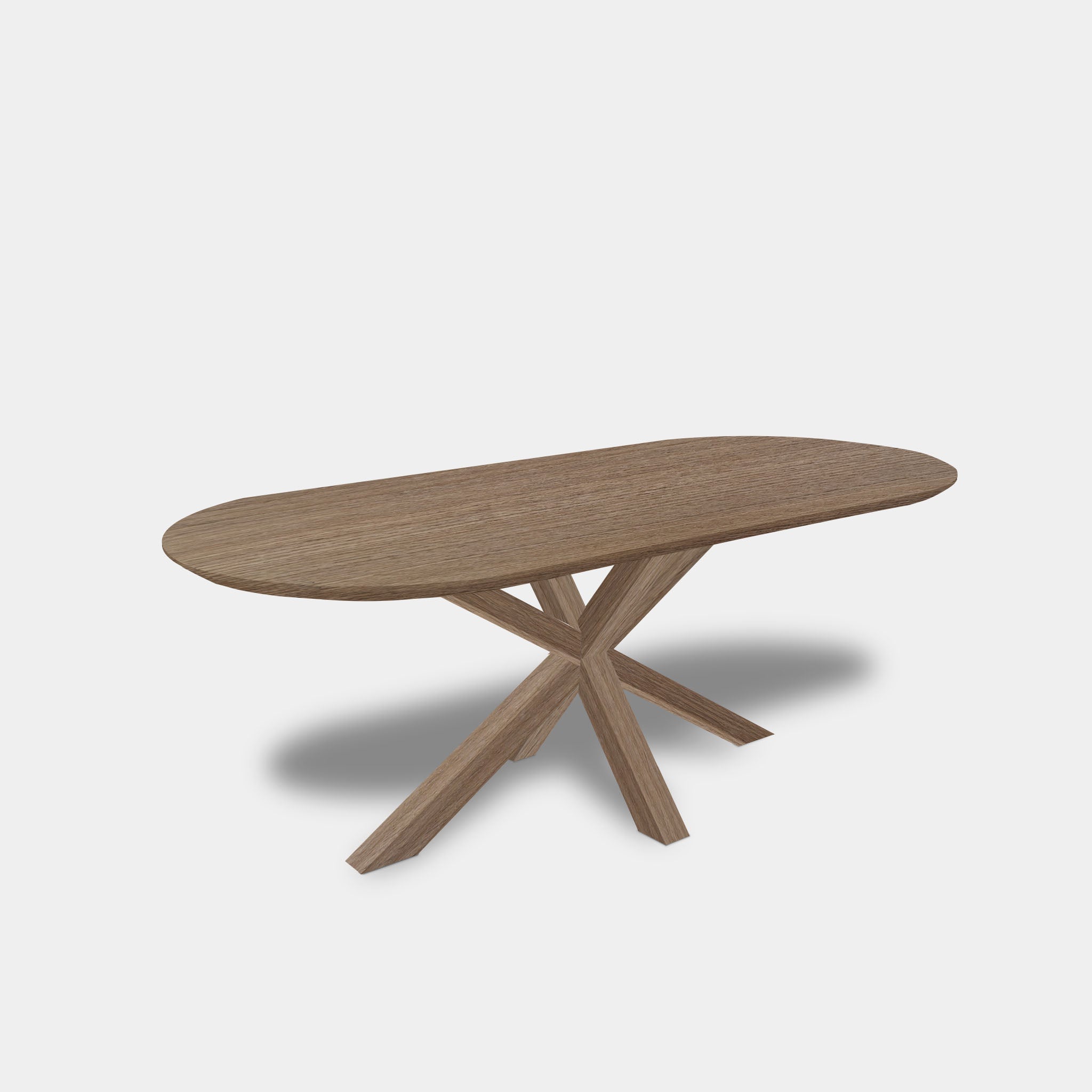 Plat Ovale Eikenhouten Tafel – Kleur: Pura Natura met Houten Matrix Onderstel