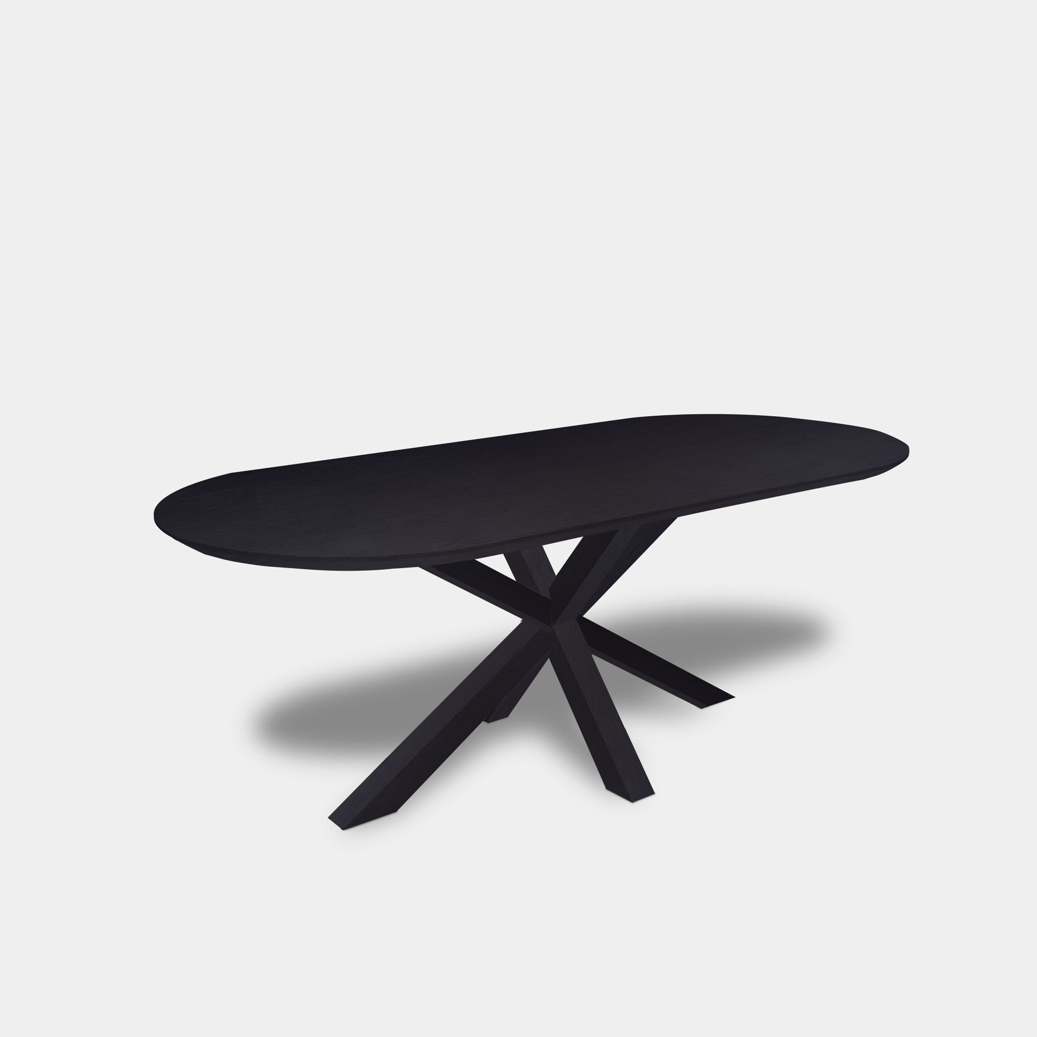 Plat Ovale Eikenhouten Tafel – Kleur: Donker Eiken met Houten Matrix Onderstel