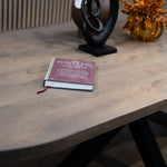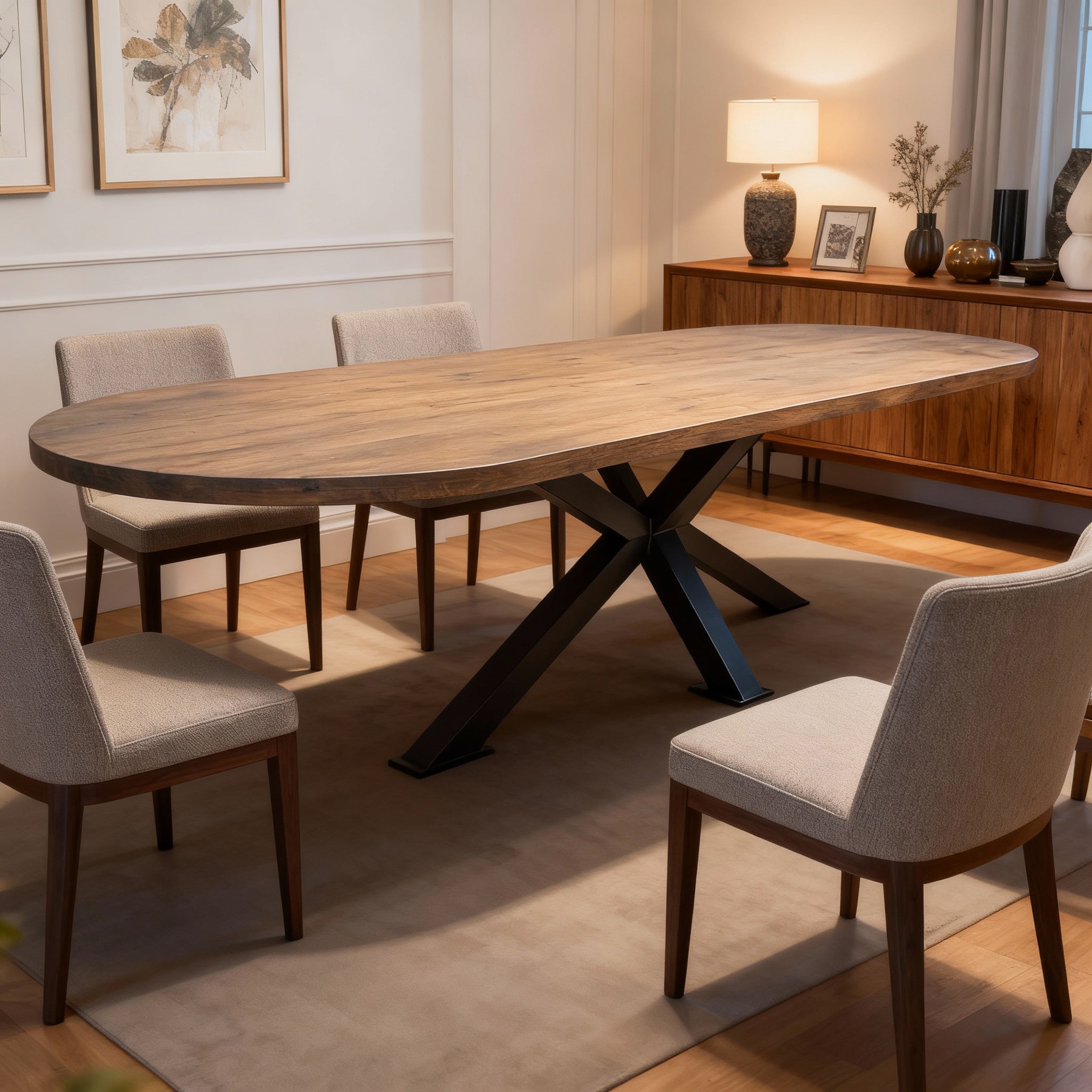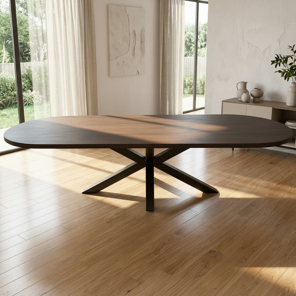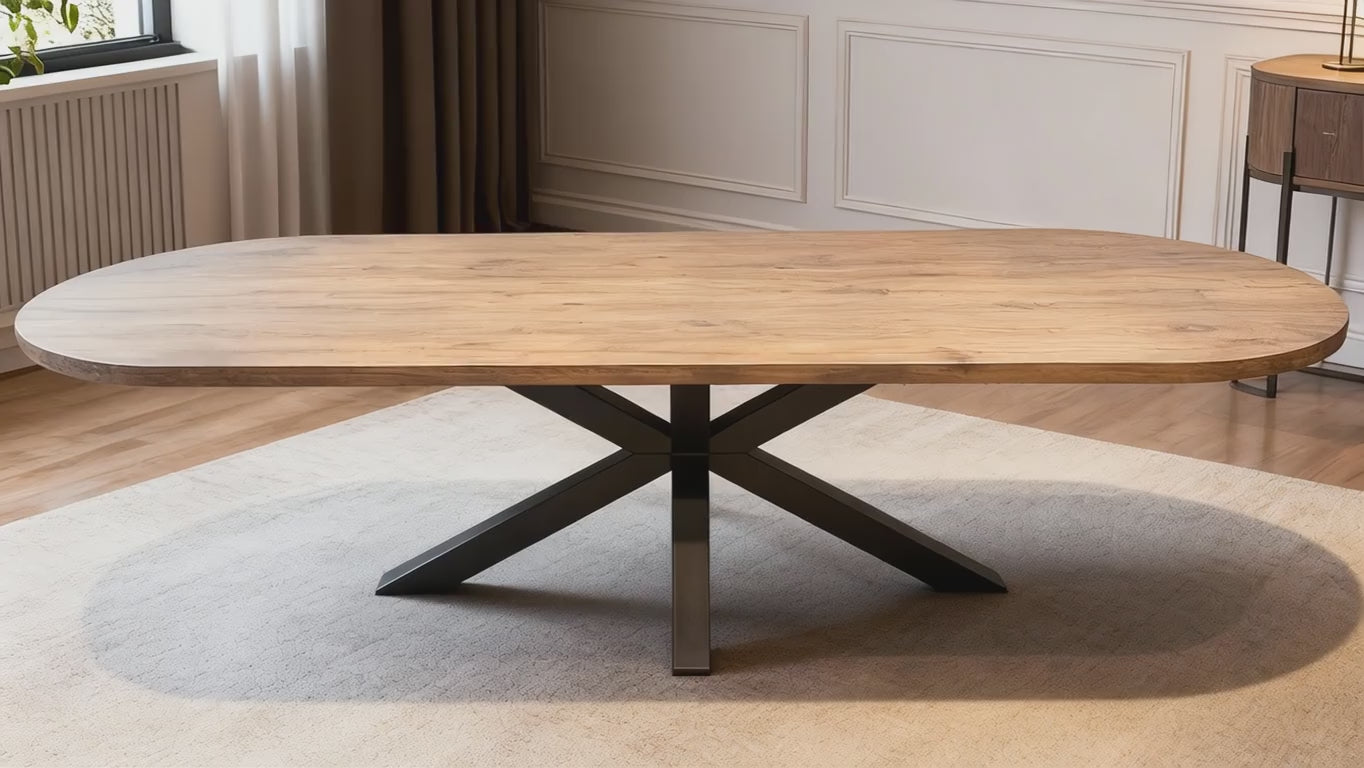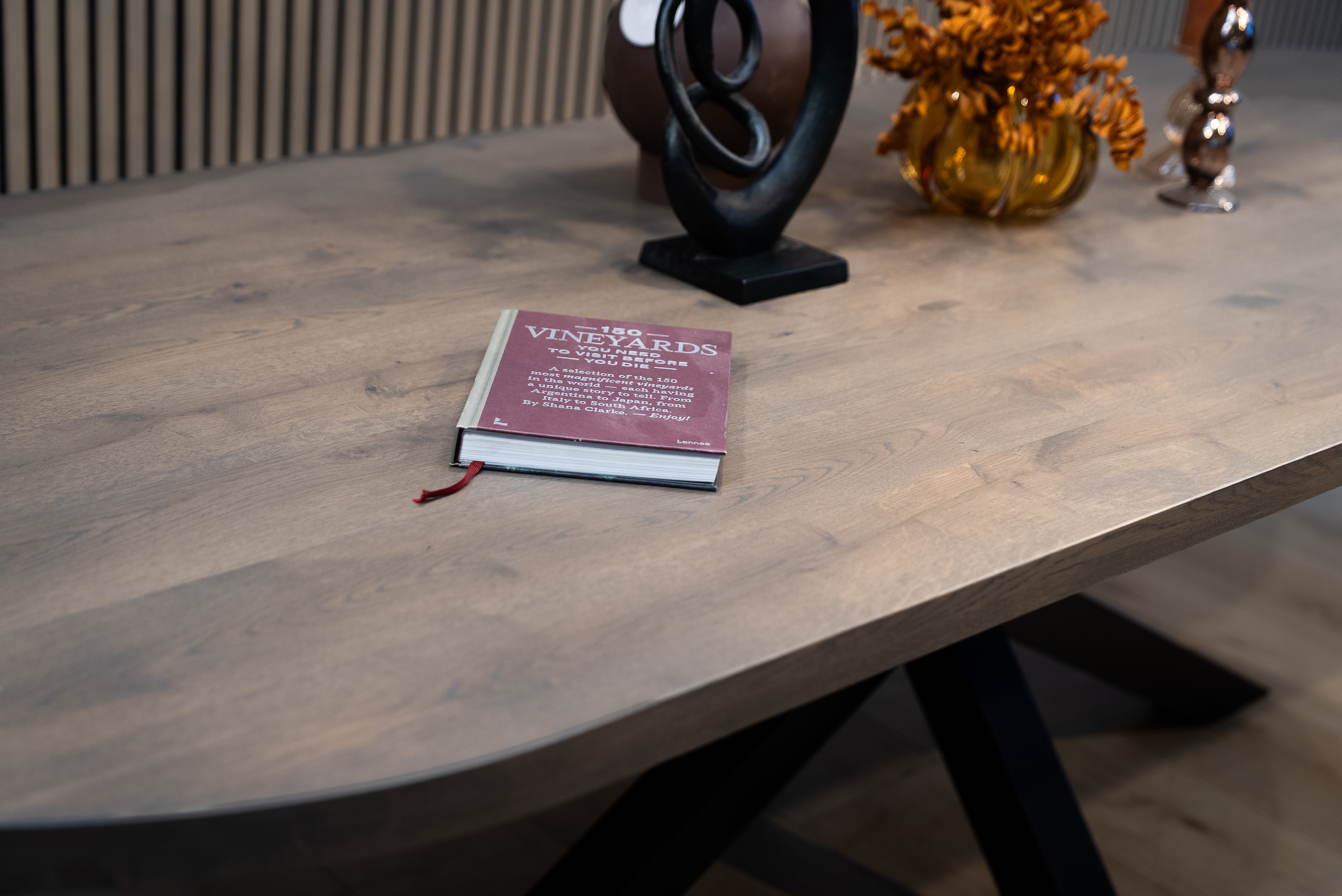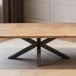 Het stoere, metalen Matrix-onderstel is een echte blikvanger en geeft de tafel een moderne look. Deze combinatie van natuurlijk hout en strak design past perfect in een licht en eigentijds interieur. Een prachtige tafel die rust en stijl moeiteloos combineert.