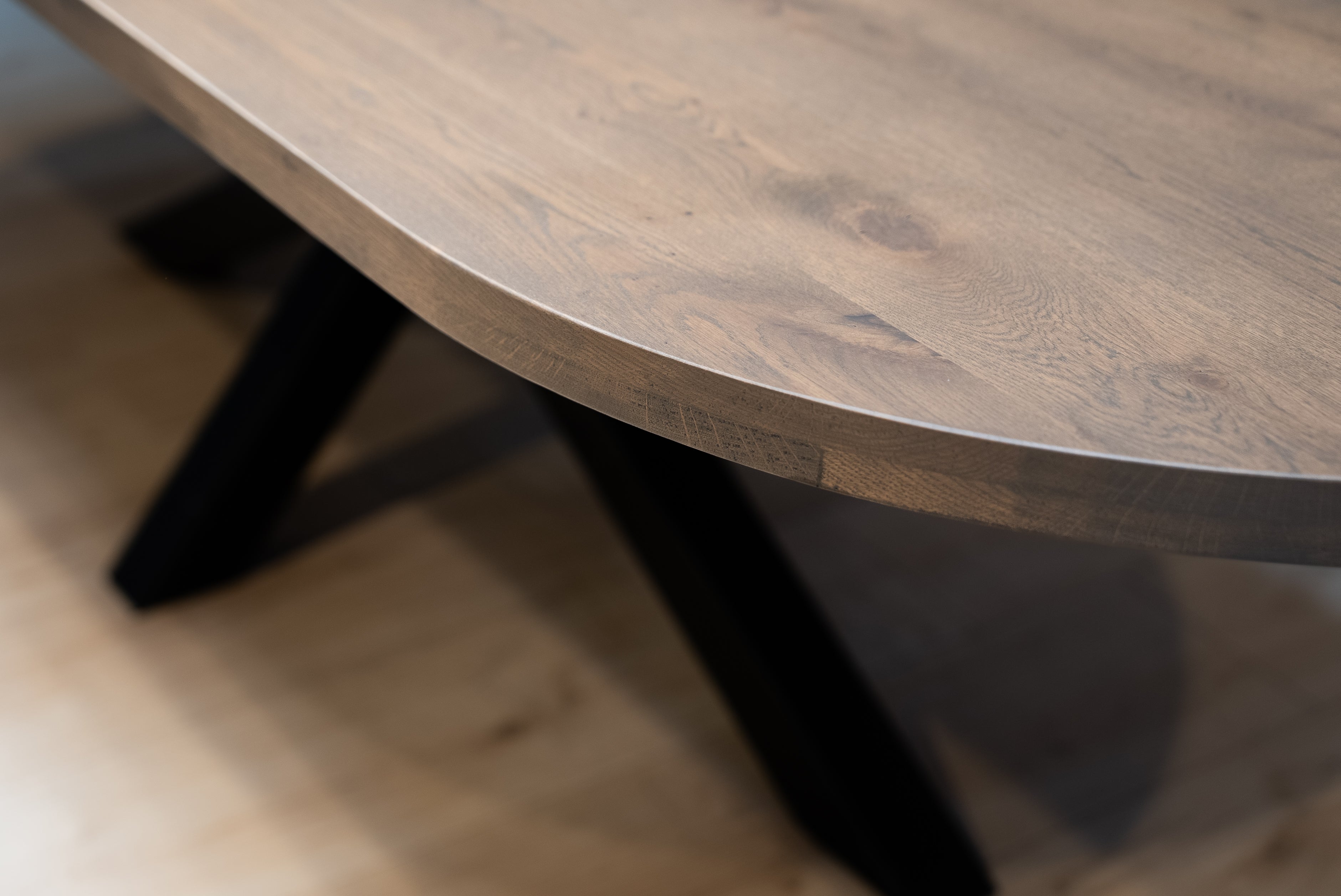 Deze plat ovale eettafel brengt een natuurlijke en stijlvolle sfeer in je eetkamer. De zachte, ronde vorm zorgt voor een open gevoel. Het eikenhouten blad heeft een prachtige, lichte zandkleur en ziet er puur natuur uit, maar is wel goed beschermd voor dagelijks gebruik.
