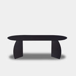 Plat Ovale Eikenhouten Tafel – Kleur: Donker Eiken met Half Rond Onderstel