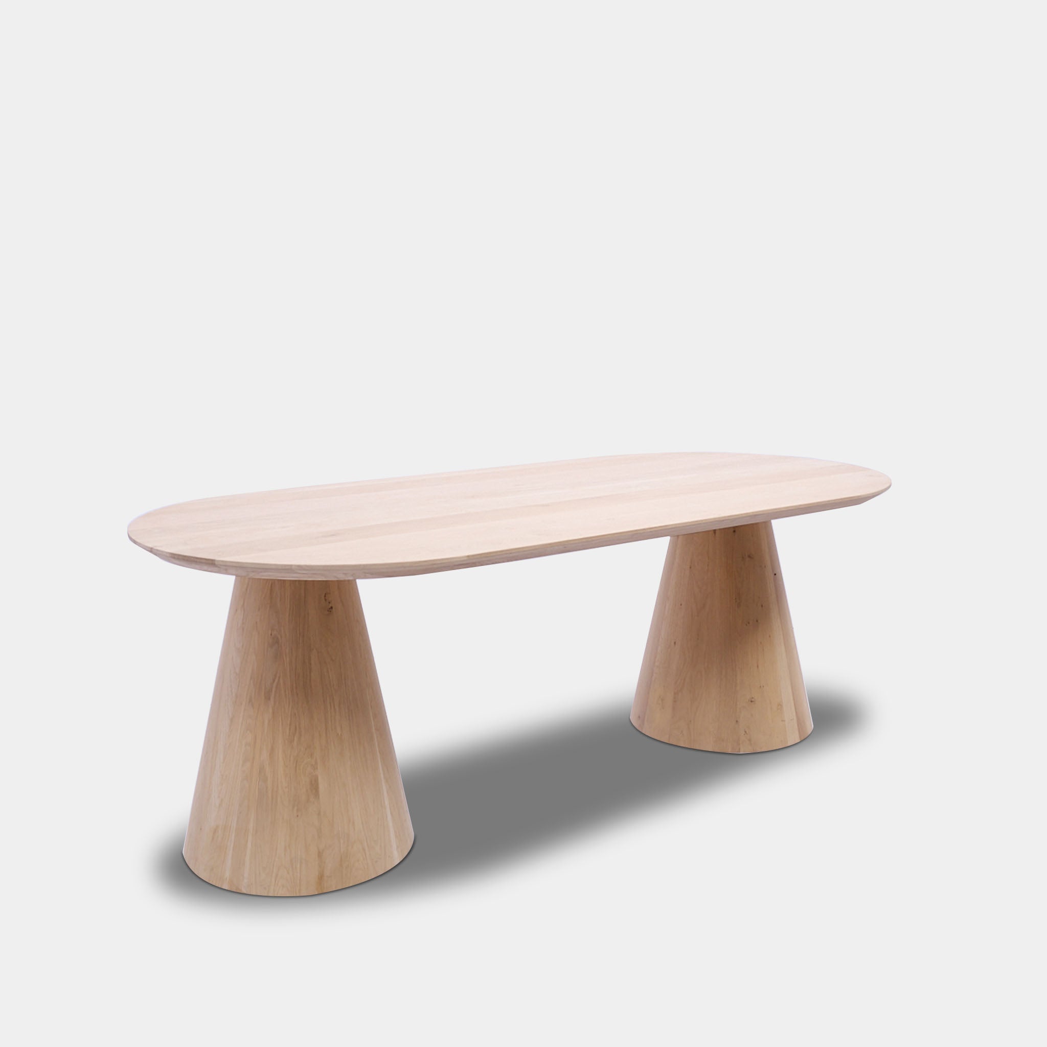 Tafel Plat Ovaal Eikenhout - Set Kegelpoot - Onbehandeld